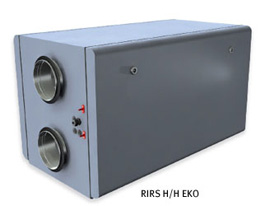 RIRS – centrale wentylacyjne z wymiennikiem obrotowych o sprawności do 80% oraz wydajności od 200 m sześć./h do 5500 m sześć./h. Wyposażone w nisko-energetyczne silniki prądu stałego EC/DC (model EKO) lub tradycyjne oraz z wbudowaną nagrzewniceą elektryczną (model E) lub opcjonalną nagrzewnicą wodną (model W). Wykonane w wersji poziomej (model H) lub pionowej (model V).