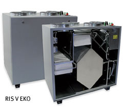 RIS – centrale wentylacyjne z wymiennikiem krzyżowym przeciwprądowym o sprawności do 94% oraz wydajności od 200 m sześć./h do 5500 m sześć./h. Wyposażone w nisko-energetyczne silniki prądu stałego EC/DC (model EKO) lub tradycyjne oraz z wbudowaną nagrzewniceą elektryczną (model E) lub opcjonalną nagrzewnicą wodną (model W). Wykonane w wersji poziomej (model H) lub pionowej (model V).